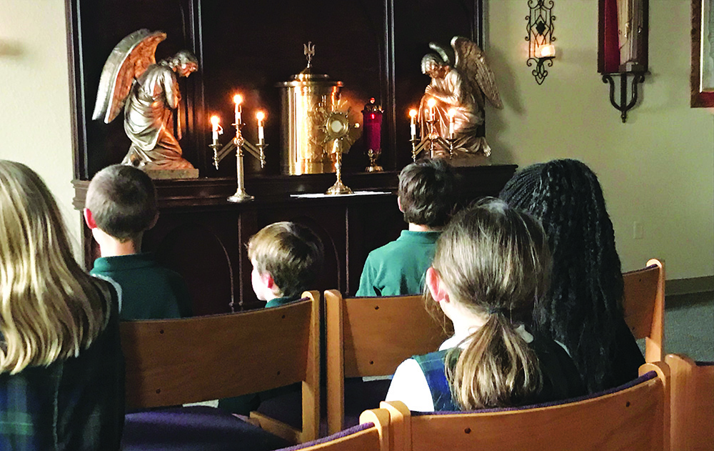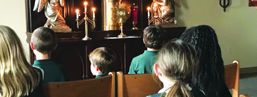 For the older students who may spend up to a full-class period in His Presence, we have Rosaries, Bibles, prayer books, and journals on hand. Also, at our first and last faculty meetings of the year and our Christmas celebration, the faculty gather for 30 minutes of Adoration and Benediction to pray for each other and their students.