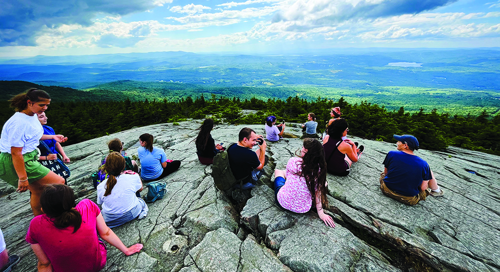 “Scenic mountain vistas are the backdrop to Magdalen’s 100-acre campus atop Mount Kearsarge, and a brick and granite chapel stands at the center. It is the intentional hub of the community,” explains Tristan Smith, director of collegiate choirs at Magdalen. At midday, all classes and activities are paused for daily Mass. Liturgy of the Hours, all-night Eucharistic adoration, and Eucharistic processions are frequent on campus.