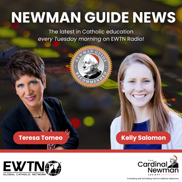 This year, EWTN Catholic Radio invited The Cardinal Newman Society to launch a “Newman Guide News” weekly segment. Host Teresa Tomeo is joined by Kelly Salomon, vice president of Newman Guide programs at The Cardinal Newman Society, every Tuesday at 10:25 a.m. ET to discuss the latest in Catholic education and the Newman Guide difference.